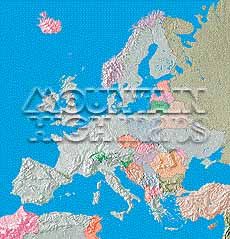 Top left: Elevation low-contrast relief rendering Top right: Vegetation high-contrast relief rendering Middle left: Grayscale land-only relief rendering Middle right: Political low-contrast relief rendering Lower right: Geo-political vector Illustrator EPS maps Inventory of maps and masks within each map portfolio