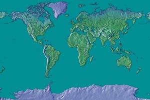Various greens:turquoise poles - pale blue ocean