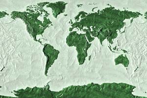 Moss green continents - pale taupe ocean