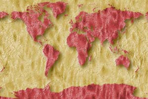 Pale taupe continents - grainy tan ocean