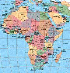 Algeria, Angola, Benin, Botswana, Burkino Faso, Burundi, Cameroon, Central Africa, Chad, Congo, Djibouti, Egypt, Equatorial Guinea, Eritrea, Ethiopia, Gabon, Gambia, Ghana, Guinea Bissau, Guinea, Ivory Coast, Kenya, Lesotho, Liberia, Libya, Madagascar, Malawi, Mali, Mauritania, Morocco, Mozambique, Namibia, Nigeria, Rwanda, Senegal, Sierra, Leone, Somalia, South Africa, Sudan, Swaziland, Tanzania, Togo, Tunisia, Uganda, Western Sahara, Zaire, Zambia, Zimbabwe |