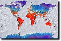 The map collection images are high resolution 300 dpi, 24-bit RGB color, and are typically sized at 2569 x 1726 pixels in horizontal and vertical axis giving file sizes of approximately 12.7 Mbytes in RGB or 17 Mbytes ifconverted to CMYK. The images are compressed using highest quality JPEG to a file size of 0.5 to 3 Mbytes on disc, and decompress transparently into most applications. Image resolution is optimized to support high quality output at full-page size. For a full specification of the #604 World map image used in the EarthShots series, check our Map Catalog specification and parameter page.