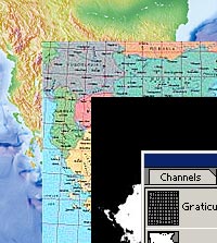 Masks Feature Includes borders, coastlines, city, latitude/longitude, and river layers. |